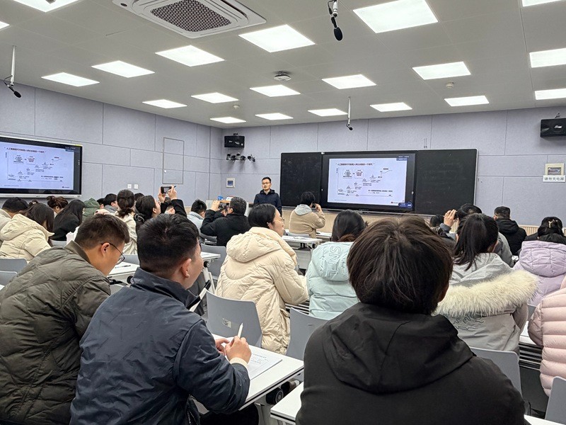 培训伊始,孙星星从华为技术生态视角出发,系统梳理ICT产业链、人工智能演进与操作系统自主可控的战略意义,详细介绍“鲲鹏、昇腾、欧拉、鸿蒙”根技术布局。他指出,高校是技术生态的第一公里,企业是“最后一公里”,只有“专业—课程—教材—基地—科研—人才”全链条贯通,才能把根技术转化为根人才。随后,孙星星重点展示我省高校与华为共建“智能基座”产教融合基地的最新数据,目前华为已与100余所高校合作、辐射50多万学生学习,形成“根技术进课堂、真实项目进实验、认证标准进学分”的成熟模式。最后,面对高校教师存在的“科研碎片化、实践场景缺、产业对接弱”等痛点,他提出“校企联合三段式”解决方案,即基础阶段,免费线上课程+MOOC实验;进阶阶段,参与华为ICT大赛和众智项目;高阶阶段,老师们应积极利用工作之余挂职锻炼,以及与企业进行联合科研或教材共建等,助力青年教师尽快成长为“双师型”产业导师。