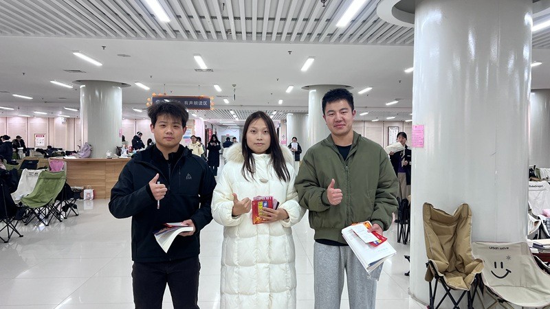 活动开始,支部成员精心挑选印有励志话语的明信片,结合考研学子备考情况与个人理想,手写“逐梦之路,终有繁花”“全力以赴,一战成硕”等内容,制作成祝福卡片。随后,支部成员来到图书馆一楼自习室为考研学子发放暖宝宝、专用签字笔及手写祝福卡片,期间还与考研学子深入交流,详细了解他们的备考状态,通过心理疏导缓解他们的压力,传递积极奋进的精神力量。最后,在“心愿共勉”环节,考研学子手持祝福卡片与成员们合影留念,定格下这一温暖瞬间。